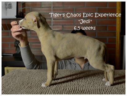 Male, born 27.2.2014 (picture - 6,5 weeks) bluebrindle with white markings Jedi in official database of Finnish Kennel Club
